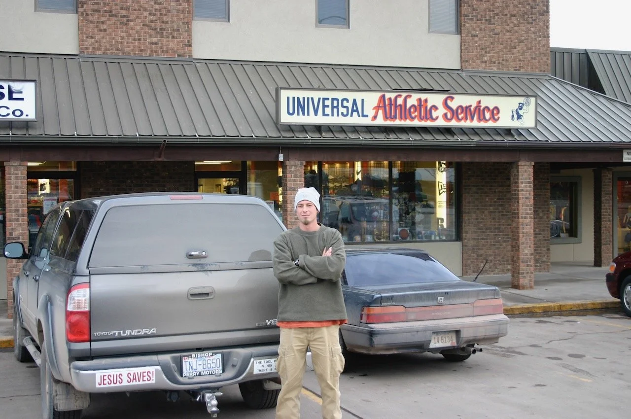 From South Dakota, we blazed across Wyoming. In Gillette, we stopped by Universal Athletics. Many of you might remember our encounter here back in the summer of 2004. To refresh your memory, let me just reproduce the excerpt from last summer’s email (as Jamie and I made our way back to Mammoth Lakes, California from North Carolina):