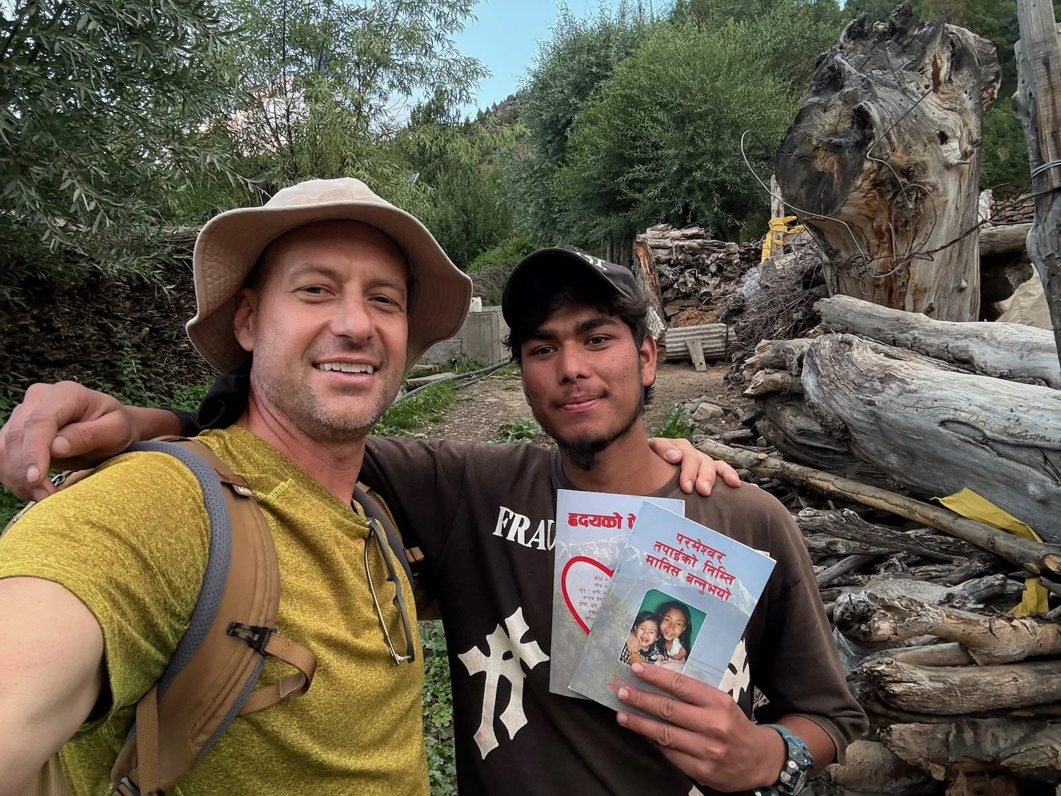A little further down the trail, I got to stop and preach openly in Nepali to a Nepali family. I gave the man of the house a Gospel of John and explained to Him that Christ is the perfect sacrifice. Only He can give us peace. He died on a cross for our sins and then rose again the third day. All along the way, the team distributed Hindi material to villagers and locals in the main market.