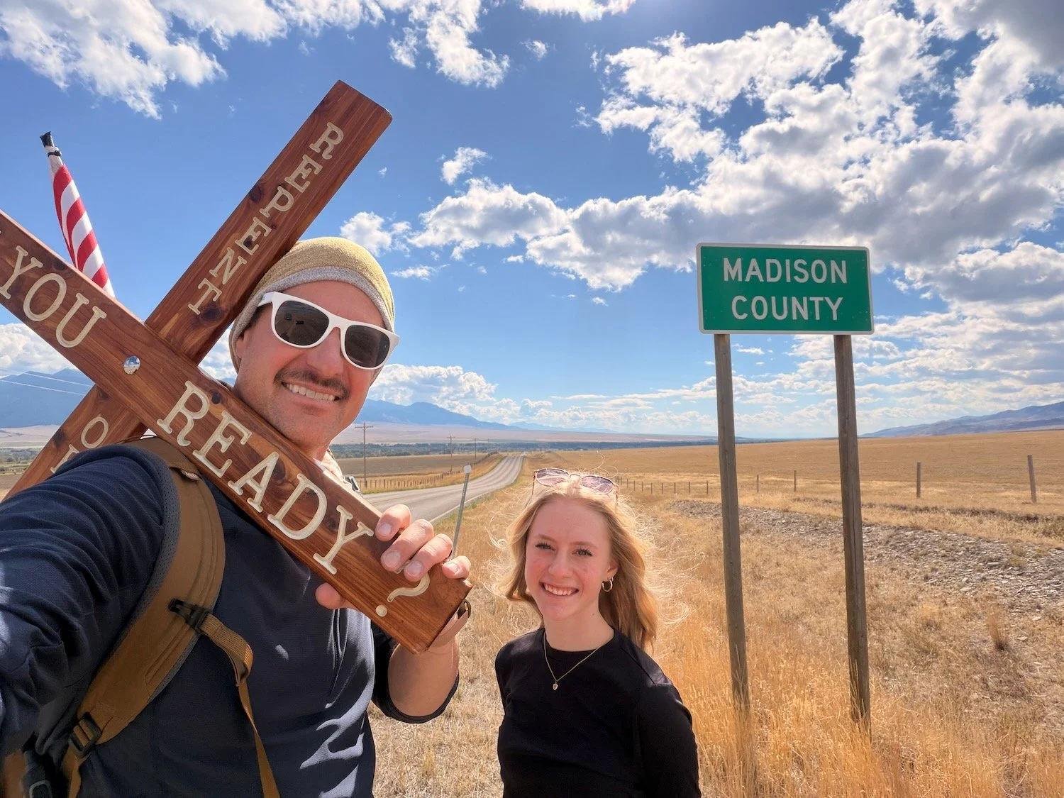 I’d appreciate your prayers as I come out of a bout of pneumonia while trying to finish up a cross-walking spur begun by Team Yeshua this summer from downtown Missoula and aiming to connect up with #TheLongWalkUSA main route as it passed through Seeley Lake. By God’s grace, and despite feeling pretty lousy, I finally finished walking every mile of highway asphalt in Madison County, and I literally walked out of the county for good with a great Gospel encounter at the county line sign. Earlier Monday, one last Hebrew New Testament went into the hands of a Jewish resident of Madison County. It, too, was a great encounter that made for 33 Hebrew New Testaments on the summer, a new Team Yeshua record. Glory to God. It was also a blessing to share testimony of our time in South Asia at a local church in Madison County on Sunday. The brethren were very blessed.